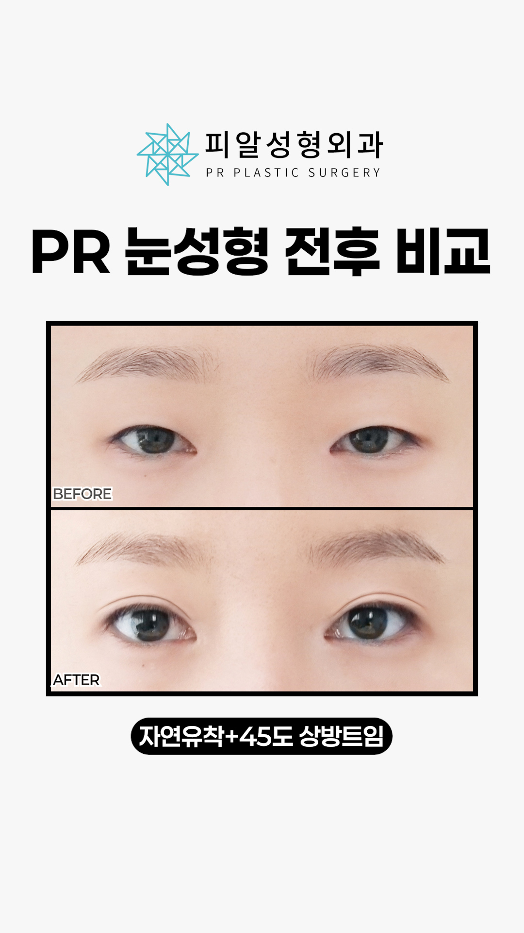 [PR눈성형 전후 비교] 자연유착+45도..