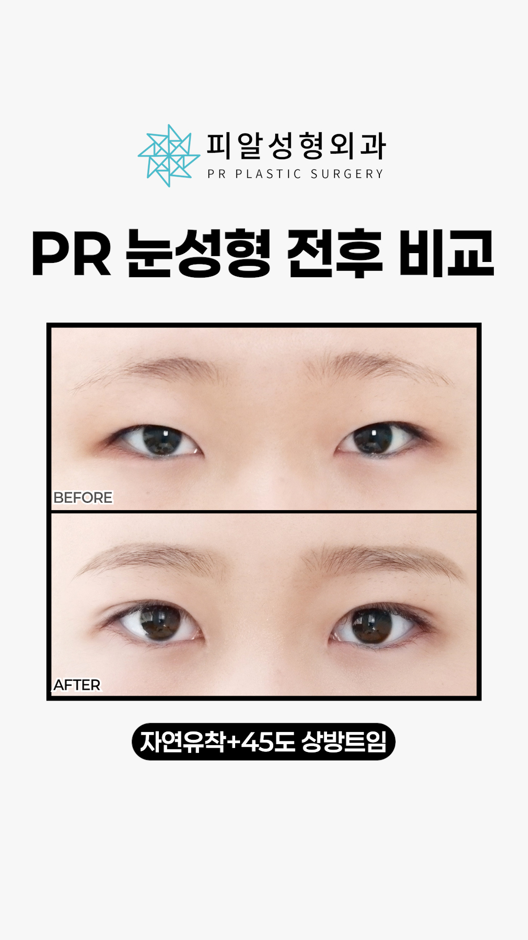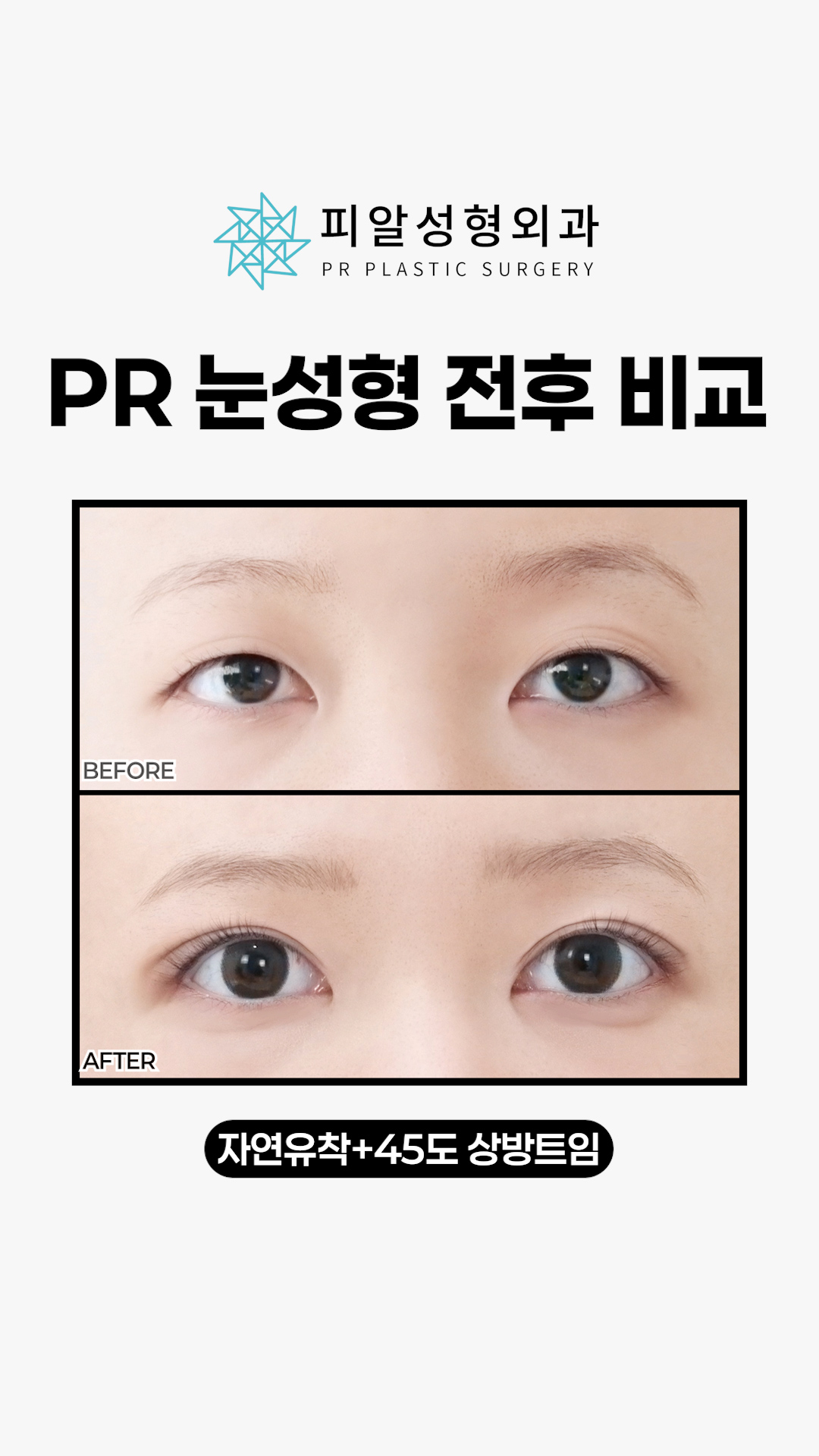 [PR눈성형 전후 비교] 자연유착+45도..